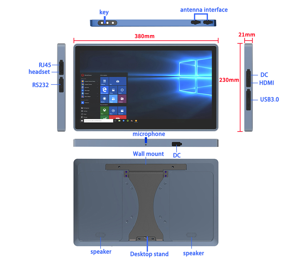 | Interface In/Out Port | HDMI*1; RJ45*1; RS232*1; Earphone*1; DC*2 (4.0×15mm); USB 3.0 *2 |
