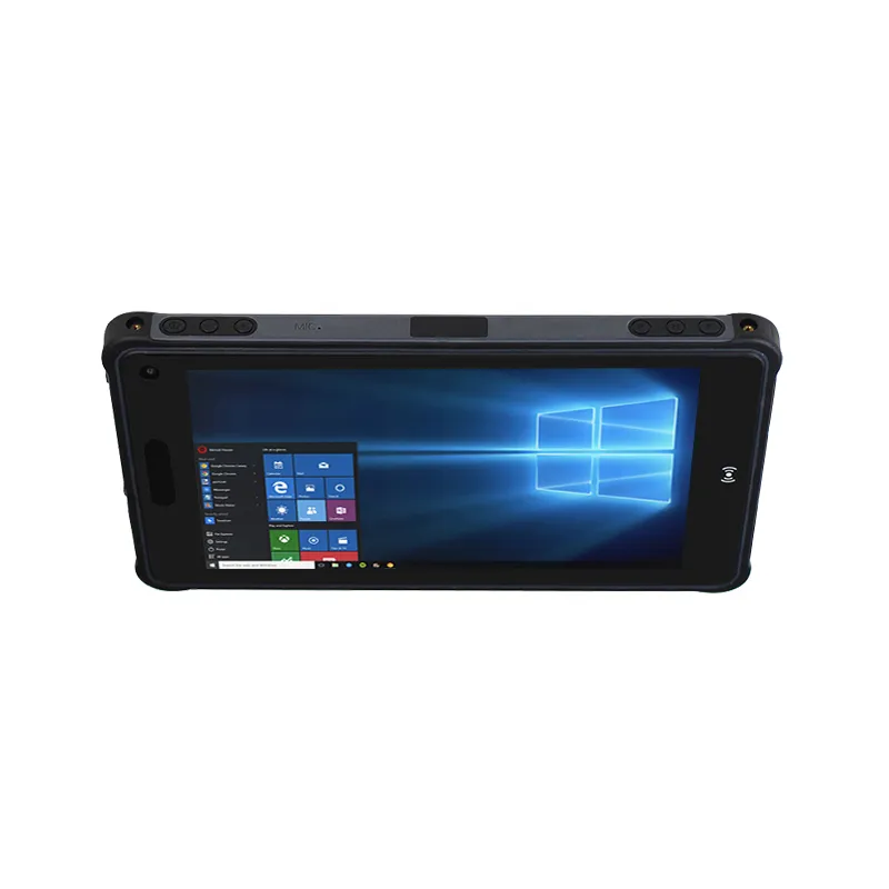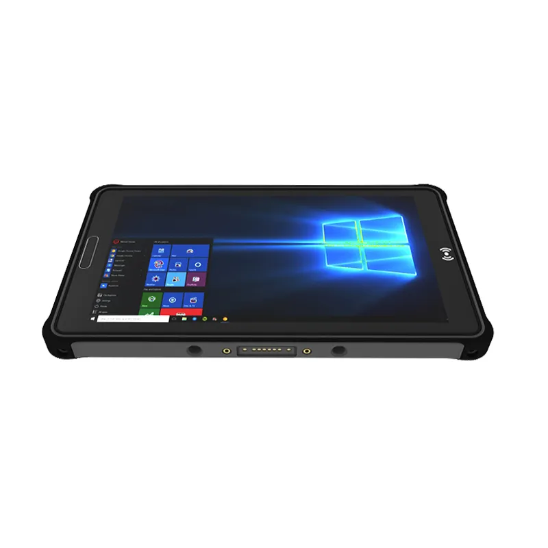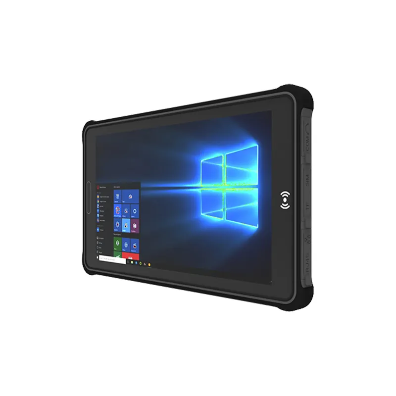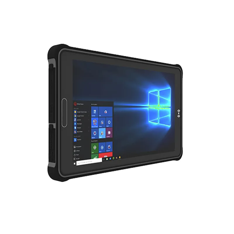 The ST8-W is an 8-inch rugged tablet powered by Intel Cherry Trail Z8350 quad-core processor, running Windows 10 (Home/Pro/IoT optional). It features an 8-inch 1200×1920 IPS display, 4GB/64GB storage, IP65 dust/water resistance, 1.2m drop protection, and supports multi-mode connectivity including 4G LTE, dual-band Wi-Fi, Bluetooth 4.2 and NFC. With optional modules like 1D/2D barcode, UHF RFID (M-500/M-301) and fingerprint recognition, it is designed for industrial applications requiring Windows